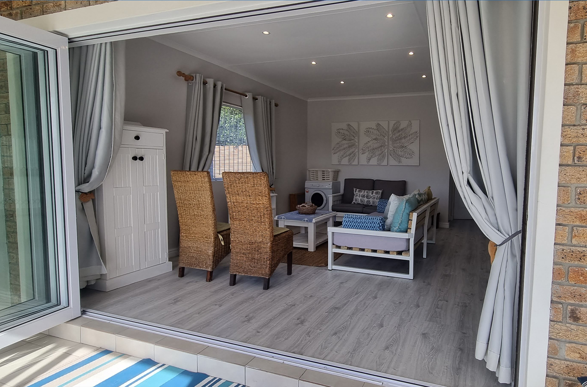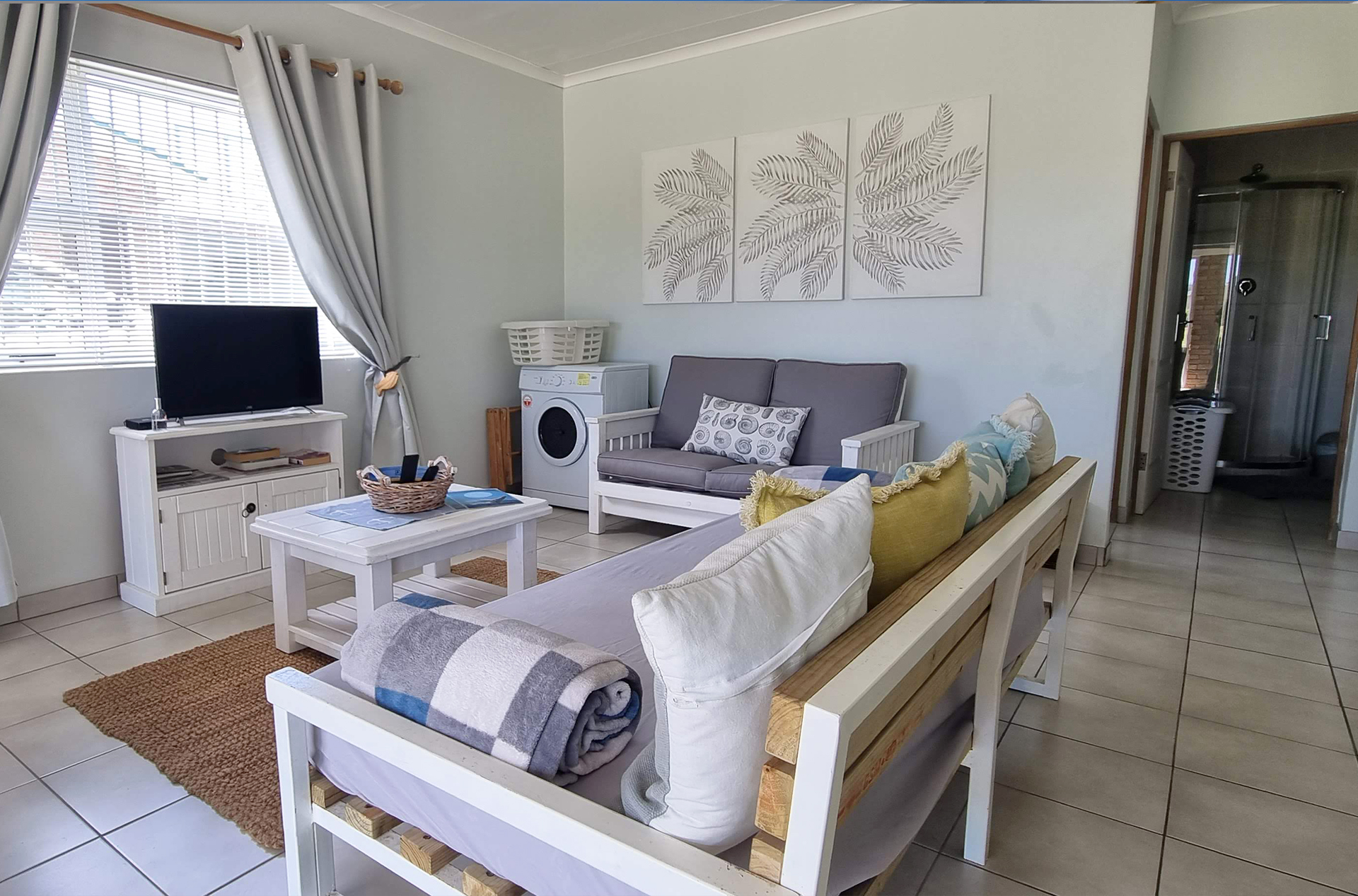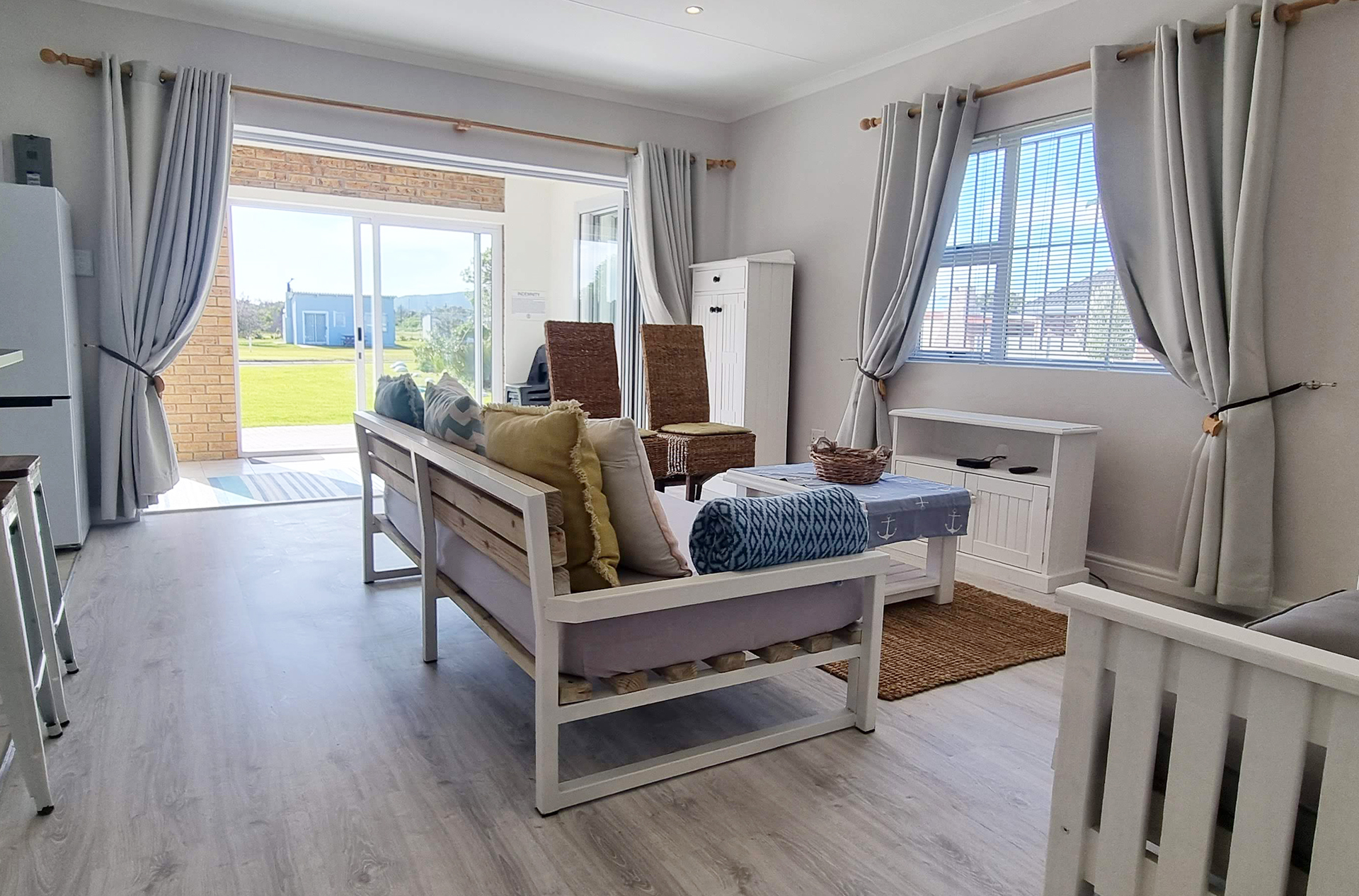 Tucked away in the secure Pearly Beach Resort, Pearly Bay is a stylish and comfortable self-catering holiday home, perfect for families and small groups looking for a relaxing coastal getaway. Just 90 meters from the beach, this modern retreat offers everything you need for a memorable stay, whether you're soaking up the sun, exploring the stunning Overberg coastline, or simply unwinding in a peaceful setting. Step inside and feel at home in the open-plan living area, where plush couches, a sleeper couch, and a TV with HD Openview invite you to relax after a day of seaside adventures. The fully equipped kitchen has everything you need to prepare home-cooked meals, including a tumble dryer for added convenience.
