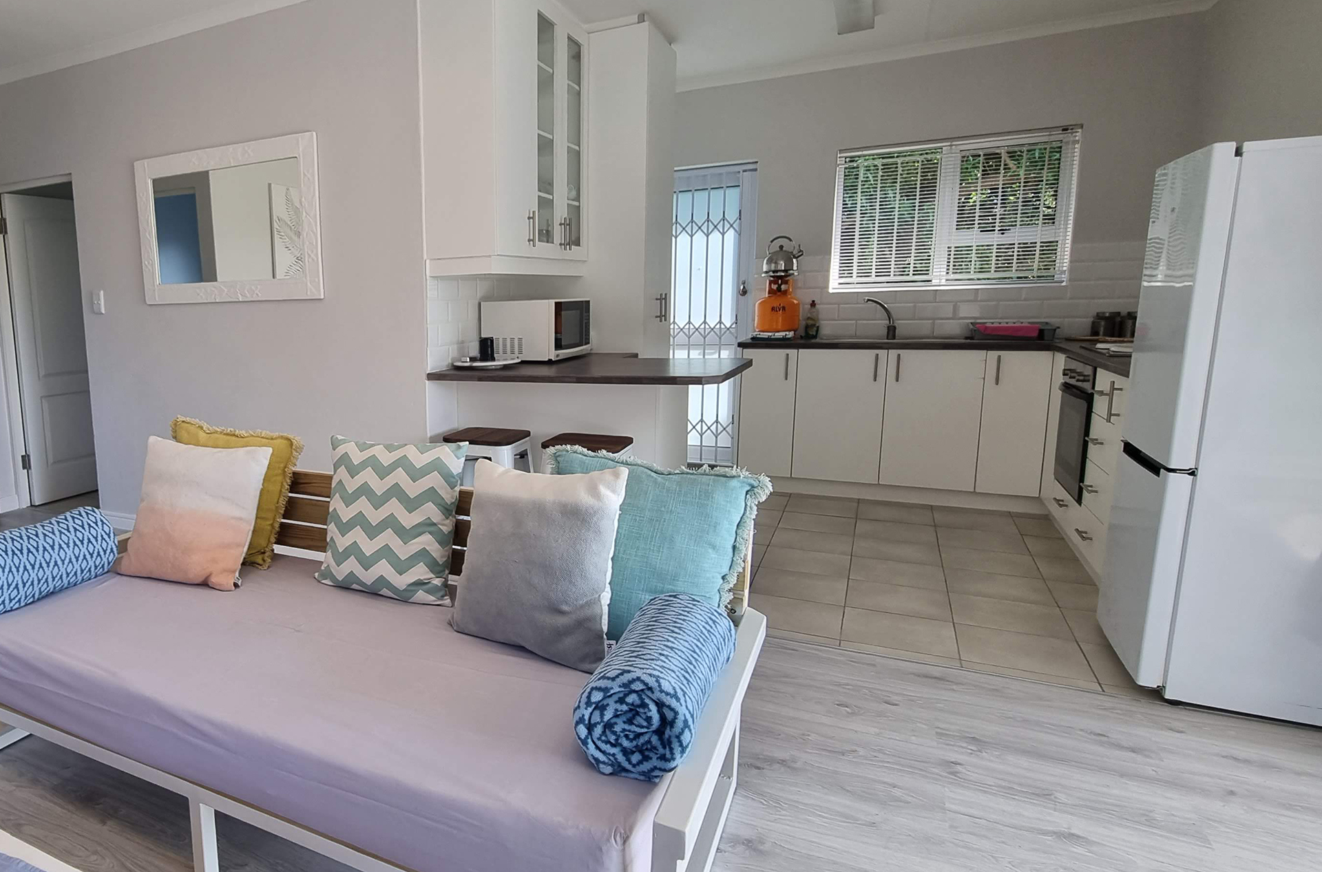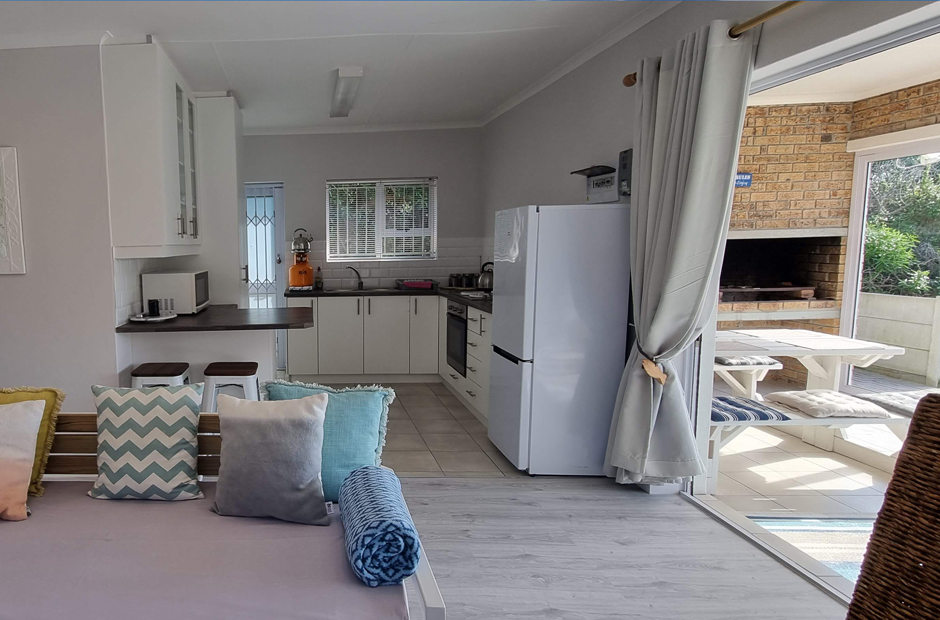 The house features two cozy bedrooms and a modern bathroom, making it an ideal retreat for families of up to five. Outside, the private patio with a built-in braai is the perfect spot for alfresco dining and enjoying South Africa’s famous sunsets. All linen and bath towels are provided, but guests are kindly asked to bring their own beach towels. While we love pets, Pearly Bay is not pet-friendly. With the beach just steps away and a resort shop within walking distance, Pearly Bay offers the perfect balance of comfort and convenience for both local visitors and international guests seeking a tranquil seaside escape. Book your stay today and experience the magic of Pearly Beach!