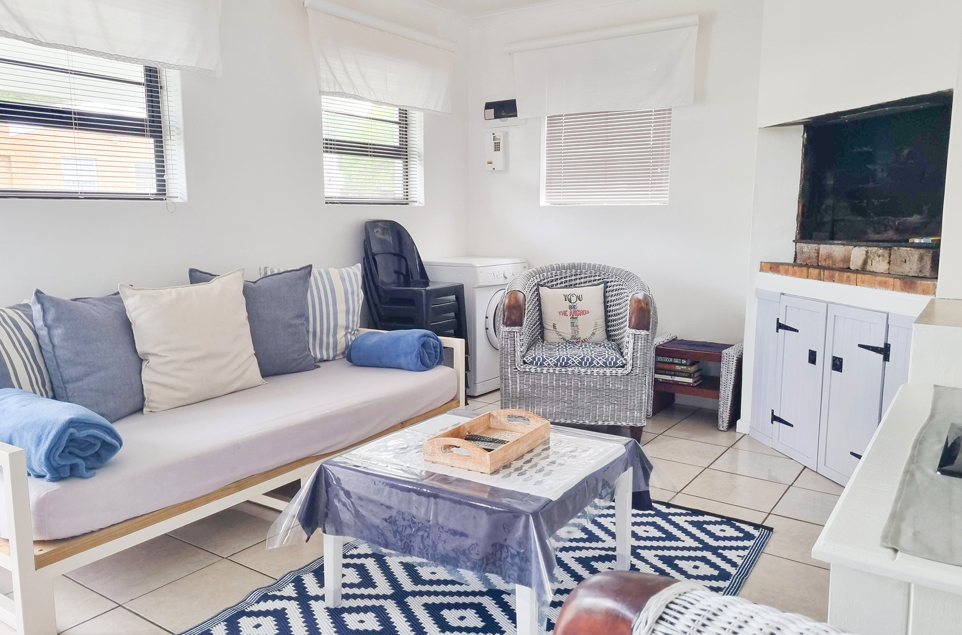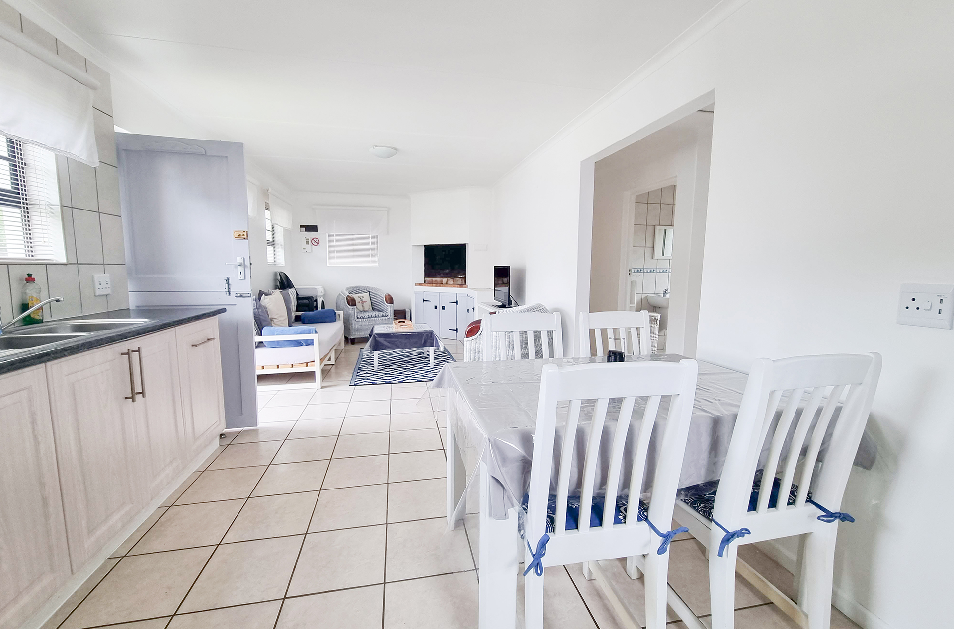 The cosy kitchen is fully equipped for self-catering and includes a washing machine and dryer. Adjacent to the kitchen is a living room with a single bed for additional sleeping space, a built-in braai area and a TV with HD Openview. All bed linen and bath towels are provided, although guests will need to bring their own beach towels. Pearly Gates is unfortunately not pet friendly.
